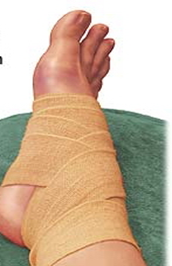 Compression Bandage Use an elastic or conforming bandage to hold the ice in place initially.Apply support to joint by using figure-8 bandage