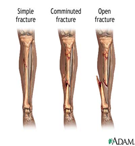 Open - A fracture/ dislocation is in contact with the atmosphere (the surface of the skin is broken).